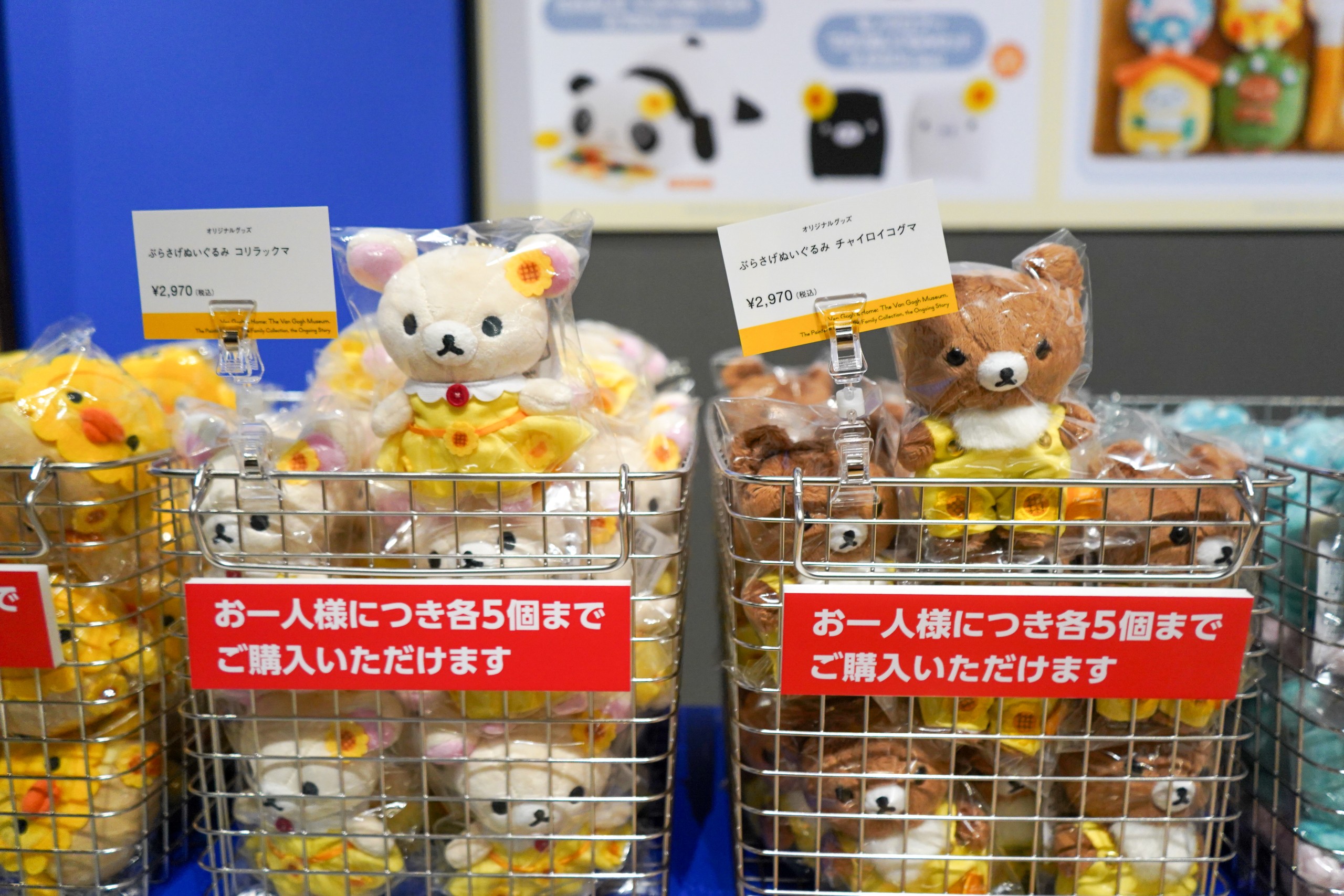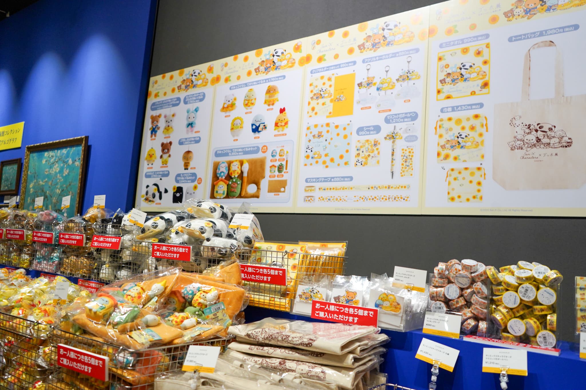 作品を鑑賞した後は、グッズ売場へ。フィンセントの作品をデザインしたTシャツやポストカード、お菓子はもちろん、「ミッフィー」や「リラックマ」、「すみっコぐらし」などとのコラボレーショングッズも多数ラインナップ。ぬいぐるみや文具など、ここでしか買えないキュートなアイテムが目白押しです。