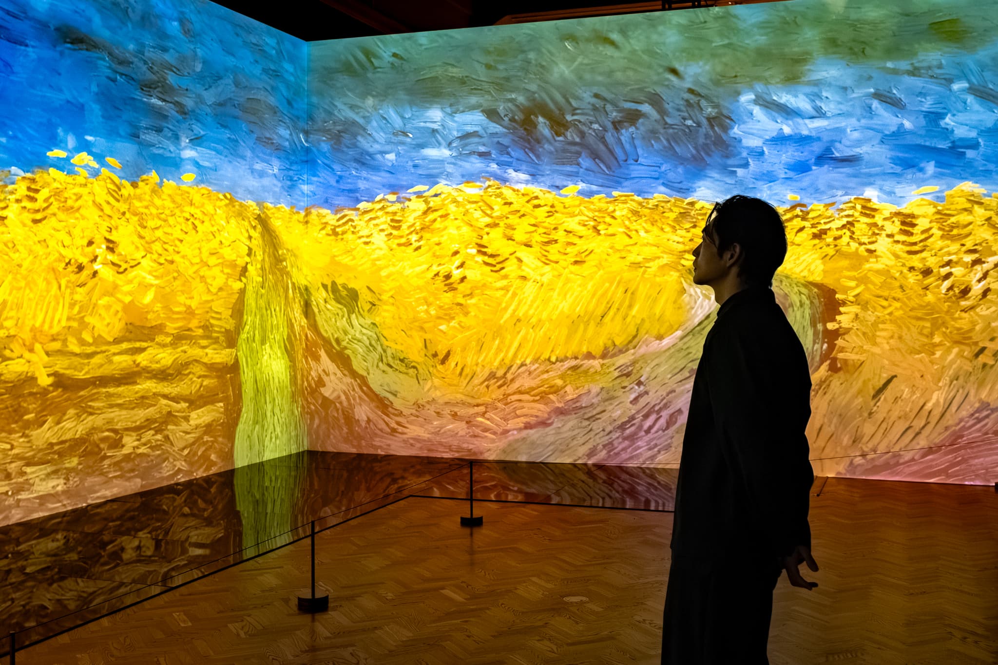 会場の最後には、ファン・ゴッホ美術館の名作を投影するイマーシブ・コーナーも登場。音楽と映像とで演出された空間は、まるで絵画の中に迷い込んだような没入感があり、訪れた人を優しく包み込みます。