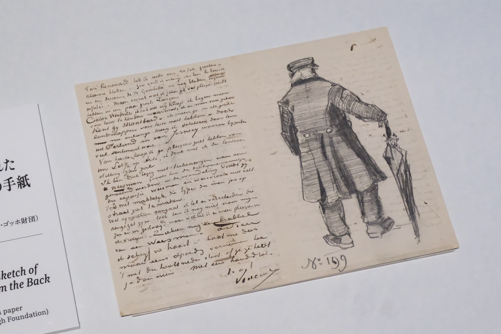 フィンセント・ファン・ゴッホ 「傘を持つ老人の後ろ姿が描かれたアントン・ファン・ラッパルト宛ての手紙」