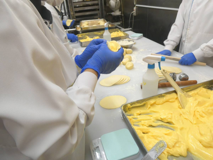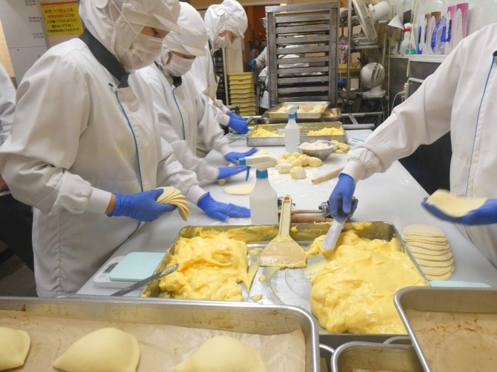 この繊細な作業は決して機械で再現することはできず、熟練のパン職人の方たちが手際よくされていました。不器用な筆者には到底まねできそうにありません。