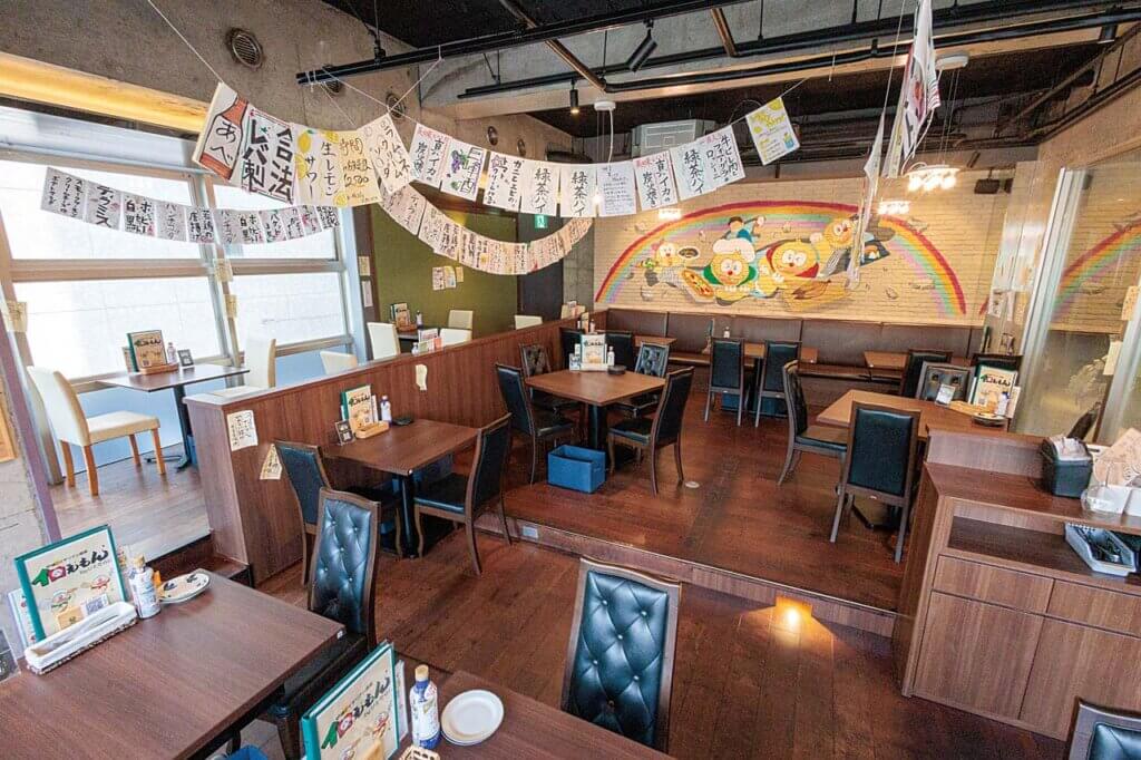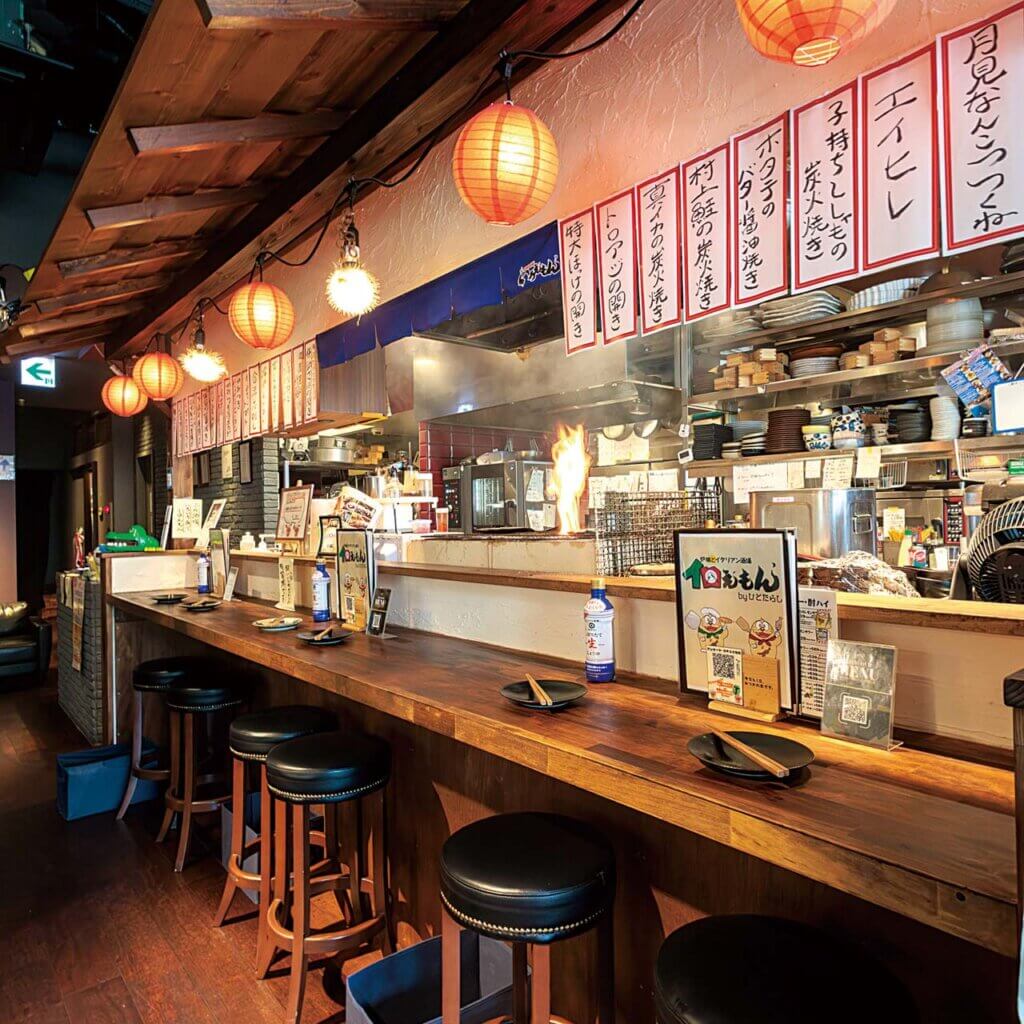 店内にはデザイン専門学校生によるキャラクターが描かれ、元気いっぱいの明るい雰囲気。料理は炉端焼きとイタリアンを提供します。平日16時~18時にせんべろセット、土・日曜・祝日13時~17時にハッピーアワーなどおトクなサービスもあります。