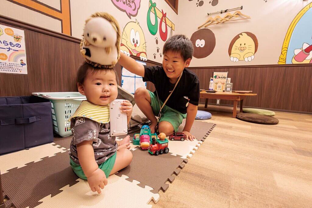 店内にはキッズスペースもあり、子どもと一緒に食事を楽しむこともできます。ママさんのご褒美セット(2,000円)も用意。