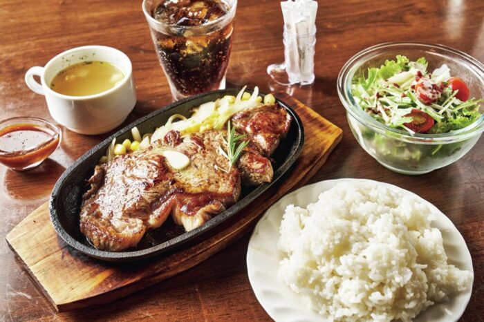 乗馬を楽しんでお腹が空いたらやっぱりステーキが食べたい! 本物を目指すマベリックは、アメリカ産のリブアイロースを使用。赤身と脂身のバランスが絶妙で、柔らかい赤身ときめ細やかな脂身は甘みがあり噛むほどに旨みが溢れる。脂身特有の重さを感じないので、さらっといただけるのが特徴だ。自家製ソースがまた美味しく、ご飯との相性抜群。馬に乗って肉を喰らう、まさにカウボーイ気分を味わえるの店、それがマベリックなのだ。