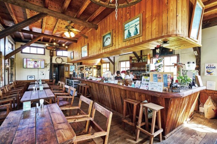 レストランの中は古材を使った本格的な作り。25年ほど前に本場にあるウエスタンレストランを模して作ったそう。店内は明るく家族でも気軽に食事を楽しめるのがいい。