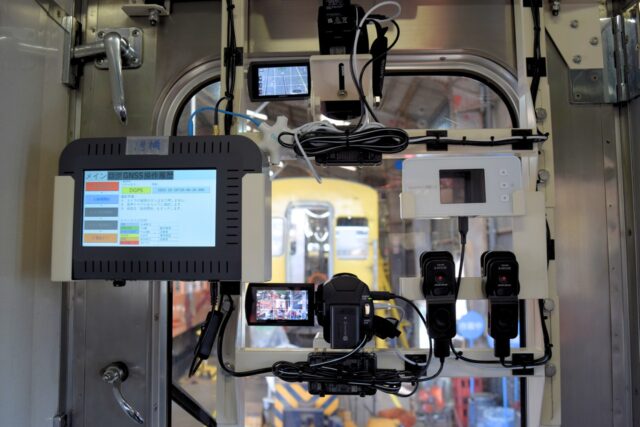 こちらの機器は線路の状態を点検するためのもので、窓に備えつけられたカメラで走行中に線路を撮影。