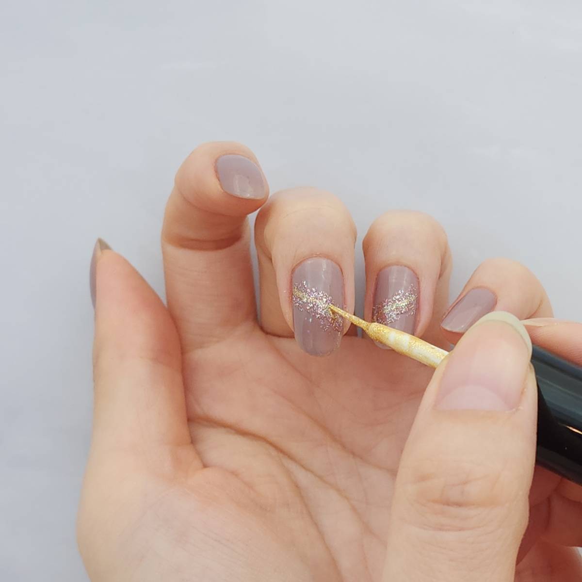 グレージュネイル②ラメを塗る