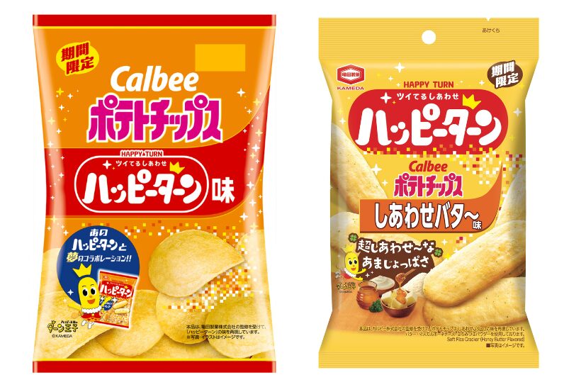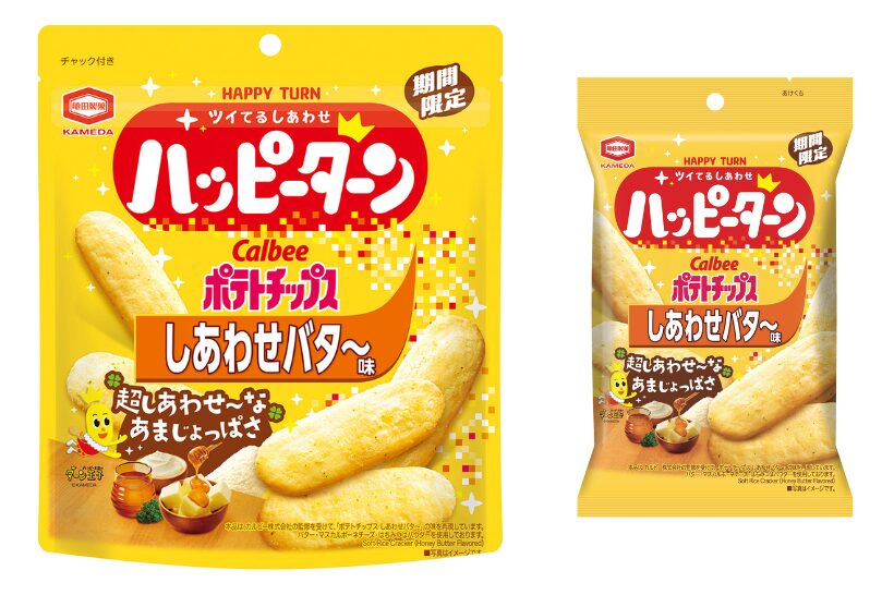 さらに、両社のアンテナショップでも限定商品を展開し、それぞれ10月20日から発売する。カルビーのアンテナショップ「カルビープラス」5店舗では、ハッピーターンの味を再現した揚げたてポテトチップス2商品を販売する。東京おかしランドにある亀田製菓のアンテナショップ「カメダセイカ」では、専用パウダーを200%使用した「超ハッピーターン パウダーマニア しあわせバタ〜味」(税込み600円)を販売。JR新潟駅CoCoLo新潟の亀田製菓のファクトリーショップ「HAPPY SHOP」では、焼きたての「ハッピーターンクリスピー しあわせバタ〜味」(税込み324円)を発売する。
