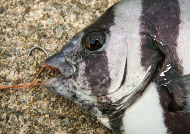 東海地方を中心とした、防波堤からの落とし込み釣りでねらうイシダイのエサはボケやカメジャコ、カニなどがメイン