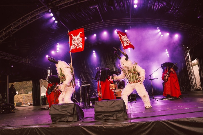 日が落ちて夜になると、第二幕が始まるような雰囲気に切り替わるのも野外フェスならでは。そこに満を持して、GLASS BEAMSが登場。インド・テイストのあるエキゾチックなサウンドと妖艶で煌びやかなビジュアル、さらに雨と靄といった自然美が加わって、ひときわ幻想的な空間が出現! 摩訶不思議な異彩を放つ圧巻のステージでした。