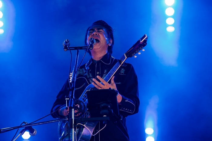 2日目はトップバッターのケロポンズや本門寺重須孝行太鼓保存会の皆さんが参加し、『朝霧JAM』の名物であるラジオ体操で幕開け。富士山も隠れた曇り空の下、『朝霧JAM』実行委員長の秋鹿博さんの「みんなで心をひとつにして、雲はどっかへ飛び散ってもらいましょう!」といった前向きな挨拶に、オーディエンスからは委員長コールが止まない一幕も。そんな秋鹿さんの言葉がヒントとなって誕生したというケロポンズの「ツイてる! ツイてる!」に突入し、大人も子どもも、さらにはテントエリアの観客までもを巻き込んで朝から元気いっぱいに踊る大盛況でした。その後もANNIE & THE CALDWELLSのソウルフルで美しく重なり合う歌声や、鬼の右腕のドラマティックな世界観に心を動かされ、ギターは弾いて叩いてサックスも吹きこなす一人ロックンロールショーを繰り広げた田島貴男では彼のシャウトにオーディエンスが大声でレスポンスする場面にも遭遇。それぞれのアーティストが異なる表現で魅了するフェスの醍醐味を味わいながら、2つのステージの往来を楽しむ来場者の姿が多くありました。