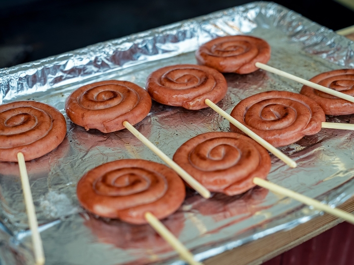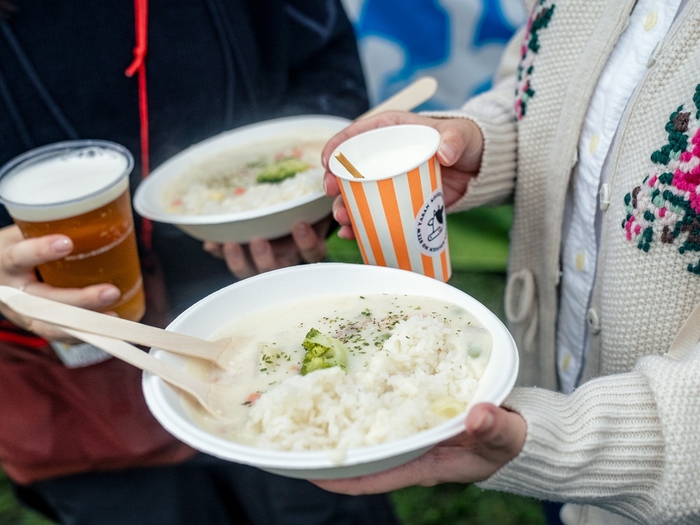 『朝霧JAM』の特徴のひとつに地産地消にこだわった、このフェスでしか味わえないフードがあります。今回も地元・朝霧高原の特産である牛乳や、それを使ったシチュー、そしてフジロックの朝霧食堂でお馴染みのぐるぐるウインナーを筆頭に多種多様のおいしいご飯が用意され、何を食べても外れなしでしたが、個人的には今回初めて食べた「炭火焼 宝来家」の朝霧ヨーグル豚(ヨーグルトン)を使った炭火焼豚丼が群を抜いて優勝でした。それから以前よりも珈琲屋が増店していて、高原の野外フェスで飲むコーヒーは格別ですからコーヒー党にとってはうれしい変化でした。