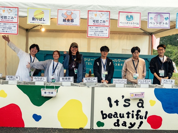 『朝霧JAM』実行委員会はフジロックを主催するSMASHとボランティアチーム「朝霧JAMS'(アサギリジャムズ)」などの有志団体で成り立っていて、場内の受付、ごみゼロナビ、朝霧ランド、KIDS LAND、そして会場内やフジロックAVALON FIELDの「朝霧食堂」も運営しているのがボランティアを中心とした実行委員会の人たちです。フォトスポット・宇宙大使マザーシップでは「お兄さんたち、前も来てくれました?」「はい!」と笑顔で談笑するシーンに出くわし、KIDS LANDでは子どもたち同士が「覚えてる? 去年遊んだよね?」「覚えてるよ!」と声を掛け合っていて、とてもいい雰囲気だなあと感じていると、朝霧ランド内のワークショップに参加した際に「昨年もいらしてましたか?」と筆者自身も声をかけてもらい、ボランティアの方との対話を楽しみました。さらに翌日その同じ方から、ふもとっぱらでも声をかけてもらったのですが、場内ワークショップから別エリアのふもとっぱらまで、フェス全域でボランティアの方々が活動されていることを目の当たりにし、交流する喜びと共に感謝の念を抱きました。