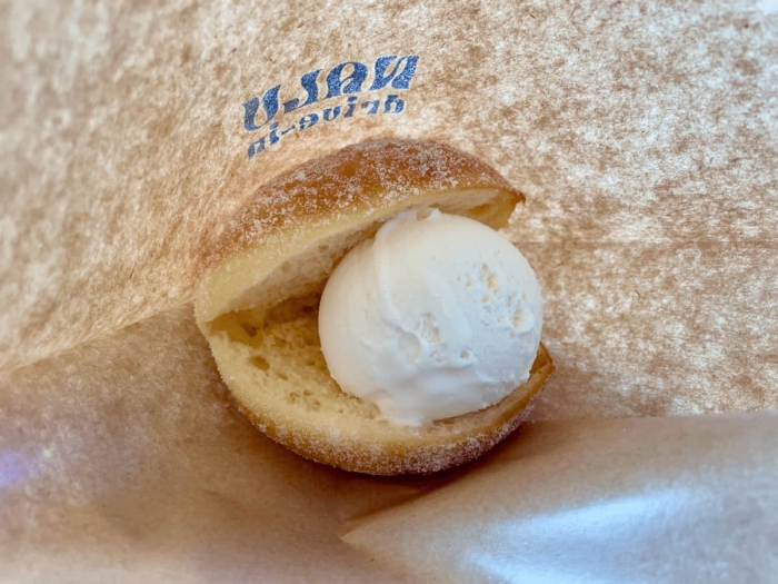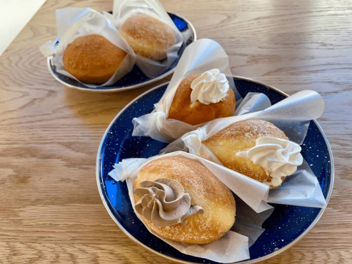 シンプルなシュガー味とシナモン味があり、中にクリームが入ったものも。クリームは甘さ控えめで生地の風味の邪魔をしません。
