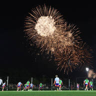 気の遠くなるような暑さに見舞われたこの日ではあったが、時間が経つにつれだいぶ過ごしやすくなってきていた。しかしライブのクライマックスはこれからだ。ようやく空の色も照明効果を発揮できる深みを帯びてきた。流星群のような光を背景にしながらの「十八」、そして「人間失格」ではユエの衣装が赤いライトに染まる。そして気付けば来夢の口からは「LAST! 悔い残すなよ!」という言葉が聞こえ、「リトルガールは病んでいる。」が始まっていた。レーザーの光が背景に描くこの曲の歌詞が、来夢の歌唱とシンクロしながら空に吸い込まれていく。80年前の夏に広島と長崎で起きたことに思いを馳せずにはいられなくなるこの楽曲が、この夜のクロ―ジングに据えられていたこと自体にも、意味深さを感じずにはいられない。