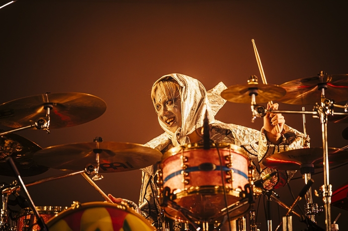 「ヒューマンエラー」での熱狂にさらに油を注ぐかのように、来夢が「命かけてやってんだ。全員まとめてかかってこい!」と呼びかけると、今度はそれを合図に「ステロイド」の激流へと突入。その終盤、ユエとreikiが左右からドラムライザーへと歩み寄り、そこに両サイドから片足をかけながらプレイする。その光景自体はいかにもロックバンド然としたありがちなものではあるが、常にそれぞれ好き勝手に振る舞っているように見えなくもないメンバーたちが、実は阿吽の呼吸で機能的に噛み合っていることを垣間見させるものでもあった。