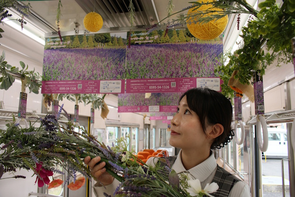 地域活性化と観光スポットの拠点づくりが目的で、緑の忍者列車と同鉄道のマスコットキャラクターが車体にデザインされている「ふくにん列車 伊賀の四季号」の各1両に飾り付けている。車内には毛糸で作った「月見うさぎ」や、セージをモチーフにしたカラー布などをつり革の支柱に装飾し、エッセンシャルオイルや香りのビーズで車内を演出している。