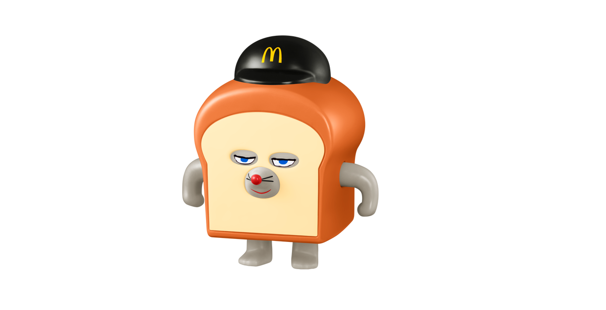 マクドナルドクルーの帽子をかぶったパンどろぼうのフィギュア。両手が動くので、ポーズを変えてごっこ遊びが楽しめます。