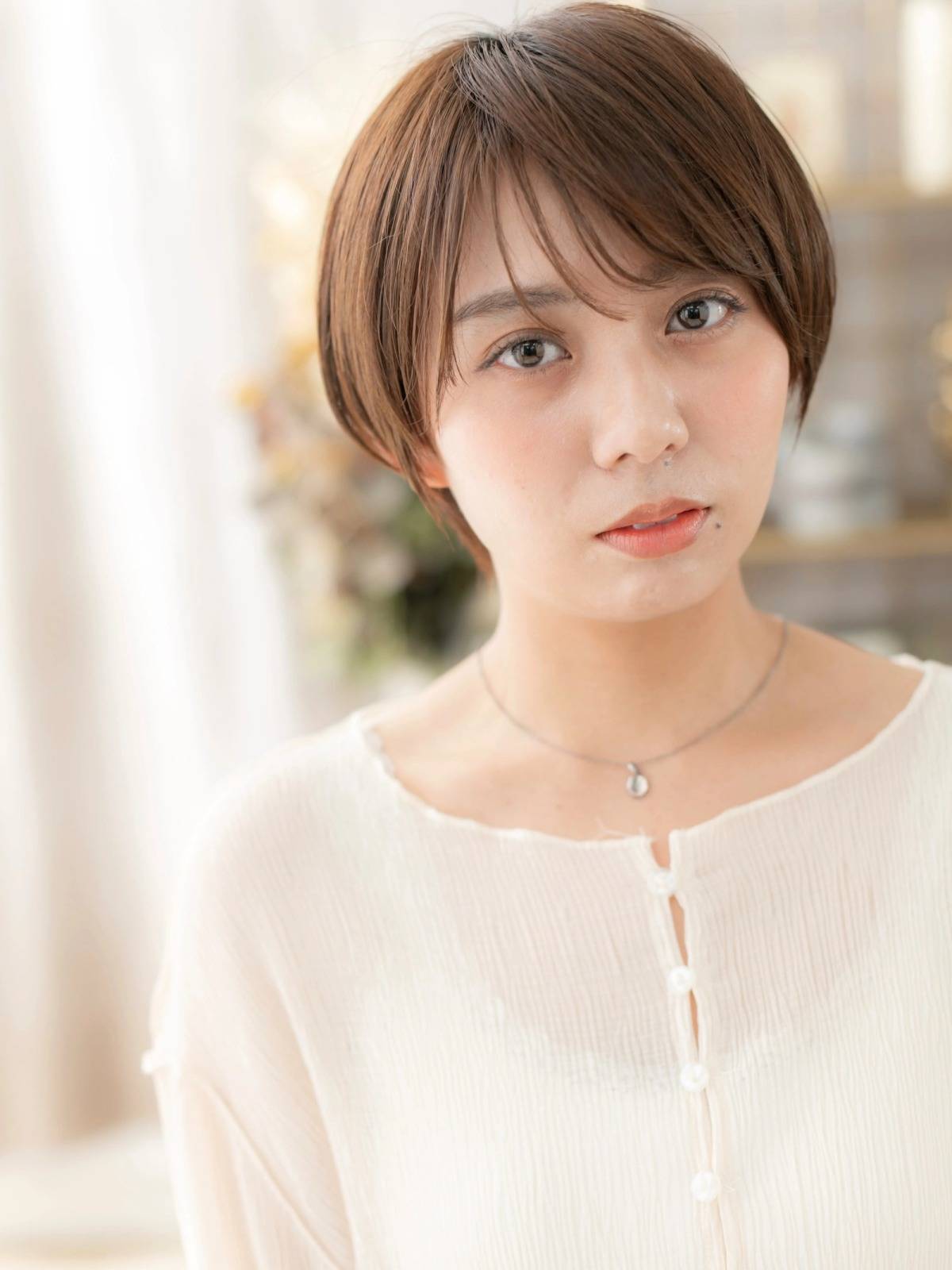 マッシュベースのショートヘアはシルエットに丸みがあり、若々しく可愛らしい雰囲気になります。
