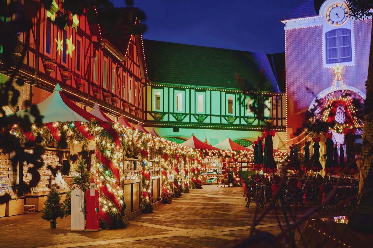 “ボタニカル”をテーマに、園内の植物を生かしたイルミネーションで人気なのが、「神戸布引ハーブ園/ロープウェイ」(兵庫県神戸市中央区北野町)で開催されている「神戸クリスマスマーケット2025 -古城のクリスマス-」です。海外のクリスマスさながらの飾り付けや建物に、ときめかない人はいないはず。随所に施されたクリスマスならではのキュートなディスプレイは、見つける度に嬉しくなりますよ♪