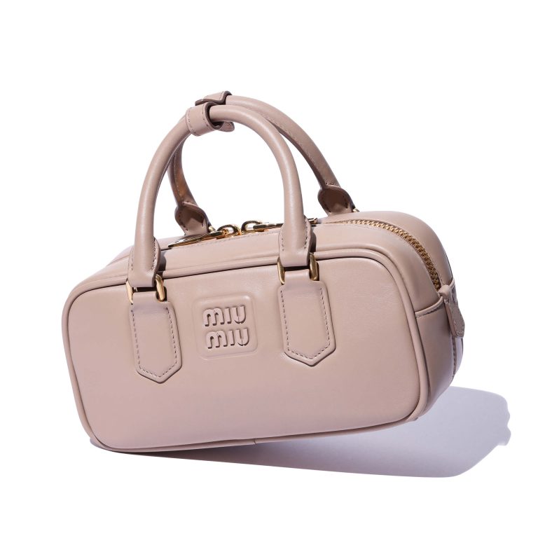 襟のある服に膝丈のスカートを合わせたり、セットアップを素直に着たり、グッドガールな装いが気になるこの秋。バッグもそれに合わせて新調したいなと思ったときに〈ミュウミュウ(Miu Miu)〉のアルカディバッグがまさに理想でした。コンパクトなサイズ感とフォルムが洗練された印象なのに、パデッド加工が施されているからもっちりとした質感で愛おしさもあって。カラーは主張しすぎないカメオベージュを選んで、マチュアなスタイリングにさりげなくキュートさを投入するバランス感で手に持ちたいです。