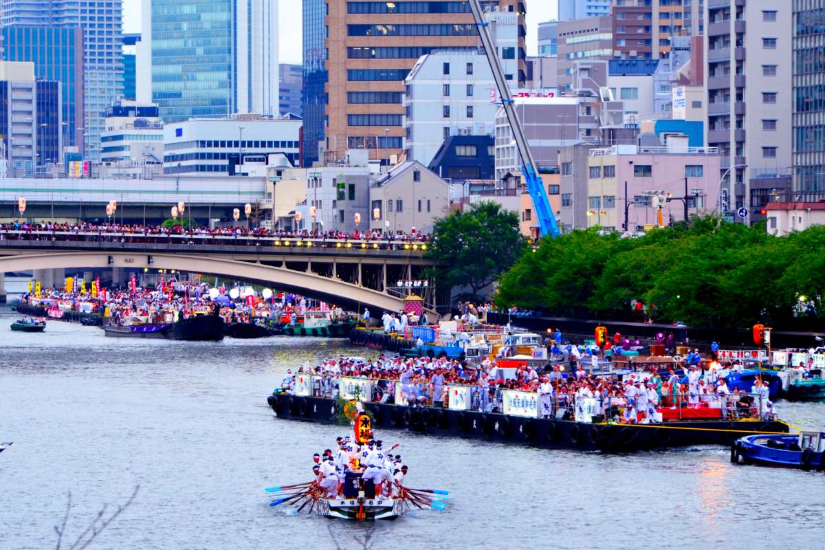 せっかく天神祭を訪れるなら、花火だけでなく祭りのルーツにも触れてみてはいかがでしょうか。祭りの中心である大阪天満宮では、日中に「鉾流神事(ほこながししんじ)」といった厳かな神事が行われ、1000年以上続く祭りの歴史の奥深さを感じることができます 。25日本宮の奉納花火の前後には、大川(旧淀川)に多くの船が行き交う船渡御(ふなとぎょ)が行われます。