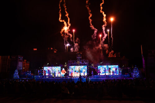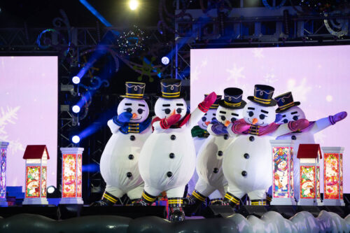 一気に賑やかなパーティーが始まり、雪が降りパイロとライト彩られた盛大なフィナーレを迎えます。