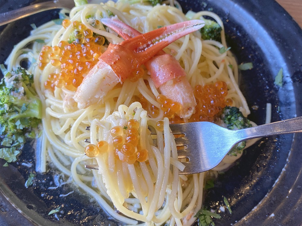 「ズワイガニとイクラのペペロンチーノ」(+550円)をチョイスしました。