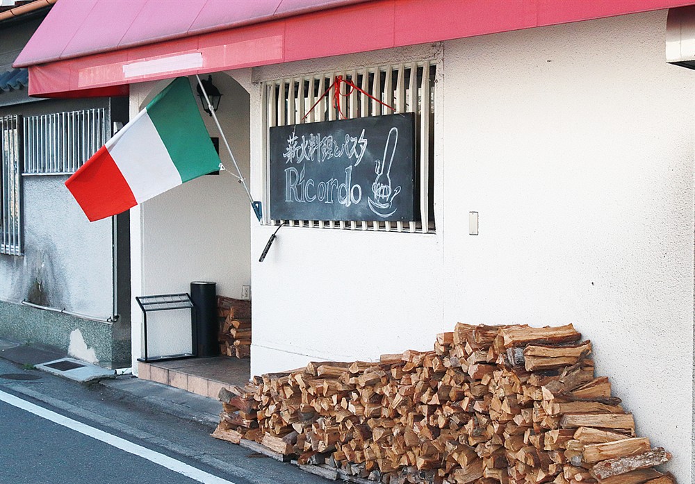 店舗前には薪が積まれていて、営業中は入り口にイタリアの国旗が掲げられているので目印にしてくだいね。