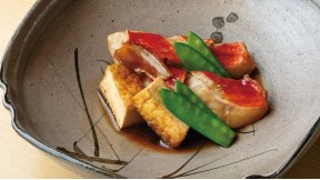 上品な甘みの煮汁をまとったきんめだいは、中まで味を含んで、ふっくらとした仕上がり。澄んだ味わいの煮つけは、ひと手間かけた下ごしらえと丁寧なアク取りによって生まれます。砂糖としょうゆのシンプルな味つけながらもきんめだいの脂と合わさると、品のある、力強い味わいになります。