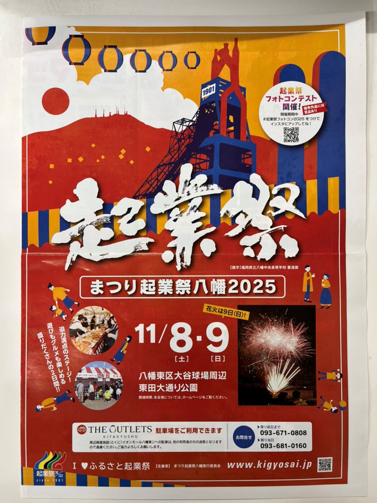 八幡東区大谷球場周辺・レインボープラザ・東田大通り公園で11月8日と9日、「まつり起業祭八幡2025」が開催されます。