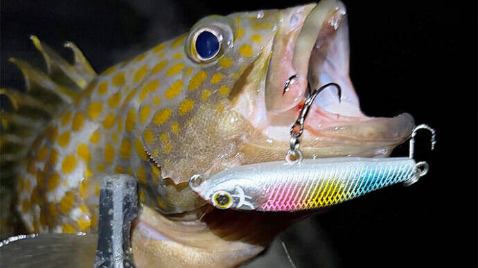 開始から30分、グッ、グッというアタリと同時にロッドに生きた負荷がかかる。すかさずフッキングに持ち込めばラテオが大きく弧を描く!いい引き、ドラグをジリジリ言わせゴリ巻きで近くまで寄せればゴンゴンと首振りファイト。