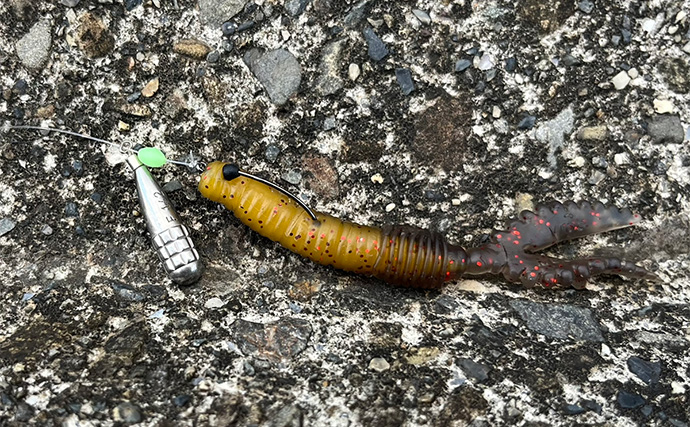 ならばフックを小さくしたら食べやすくなるんじゃないか?そう考えて使用するフックを2番から4番にサイズダウン。ワームの動きも良くなることだし、自信と期待を込めてキャストを続けます。