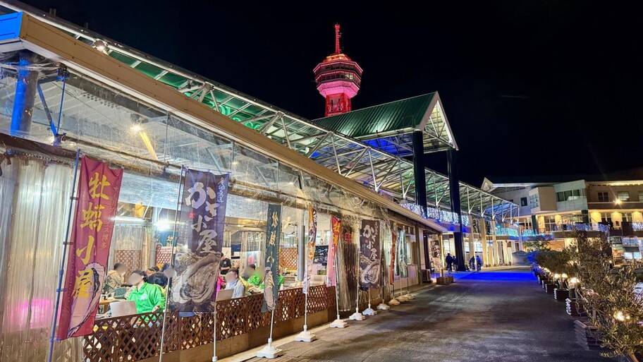 現在では、美しい海の景色と新鮮な海産物が楽しめる観光スポットとして人気を集めており、特に有名なのが、毎年10月から4月頃にかけてシーズンを迎える牡蠣小屋です。