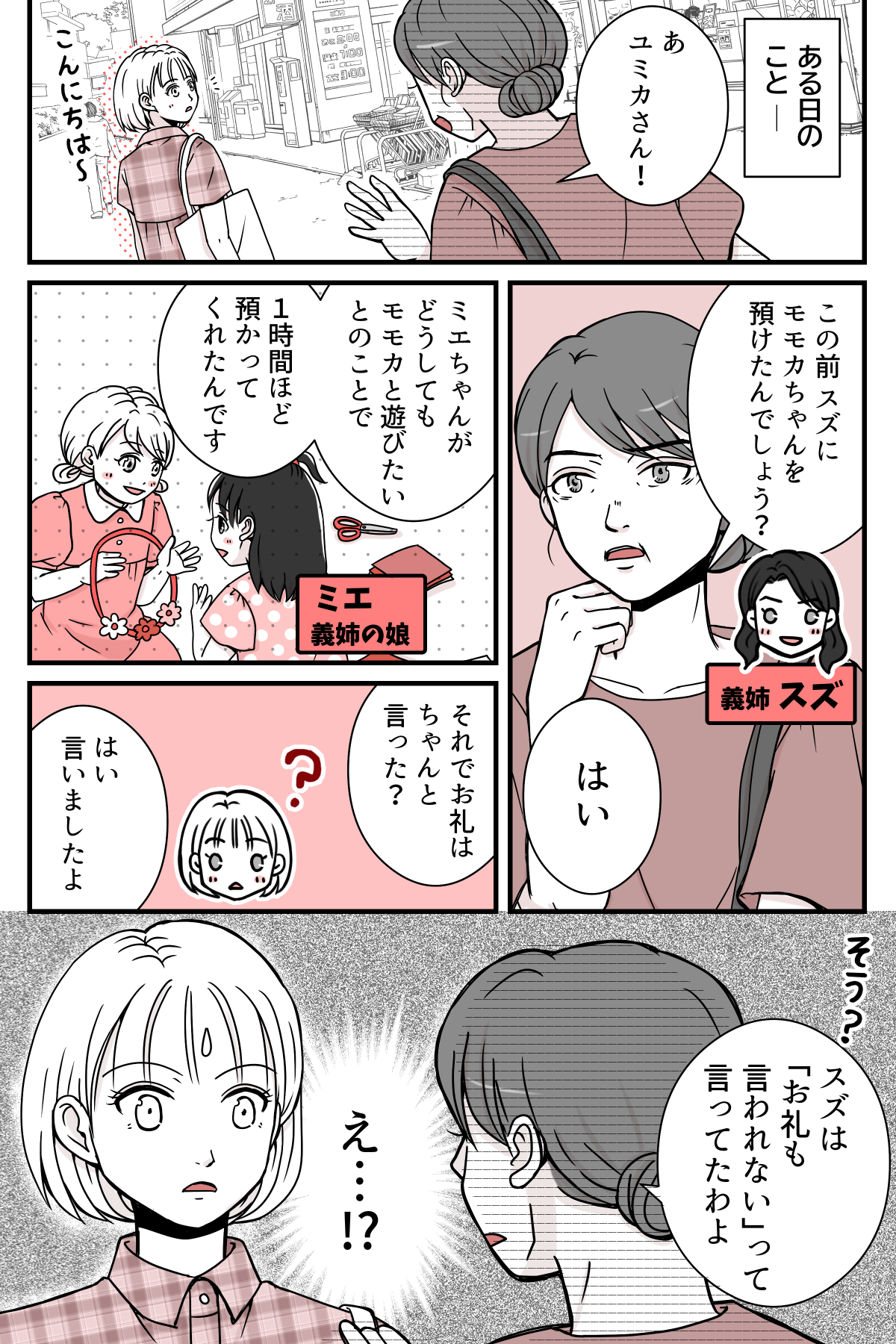 たしかに義姉の家にモモカを預けたことはあります。しかしそれは、義姉の娘・ミエちゃんがモモカと遊びたがっているからと聞いていましたし、もちろんお礼も言っています。しかし義母から伝え聞く話では、まるで私が無理にモモカを預けていったかのようになっているのです。