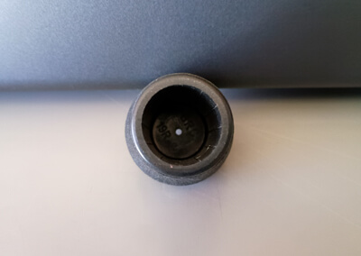 これが富士工業の「BRC ソフトバットキャップ」。さまざまな釣り竿の竿尻(バットエンド)に装着されているのを見たことある方も多いだろう。サイズを表している数値は「BRC19.0R」だが、開口部の直径はなぜか18mm。400円(税抜)という超リーズナブルな価格で、パワーハンドルノブ(もどき)が実現できる!