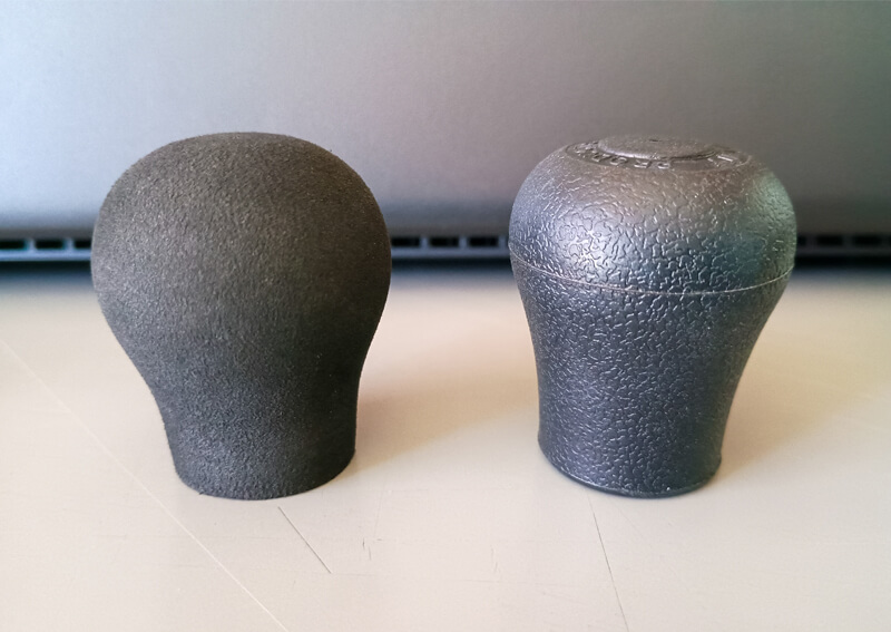 しかし当時の私は、このときばかりは「こんなモノもあるのね、ふぅん…」で終わるほど丸い人間ではなかったようで、何とかもう少しリーズナブルに存在感のあるノブにできないものか…と、釣具店やハ○ズ(かつての東急ハ○ズ)などで素材をイロイロ探し回った。そして、たどり着いたのが結局は釣具で、富士工業の「BRC ソフトバットキャップ」だった。