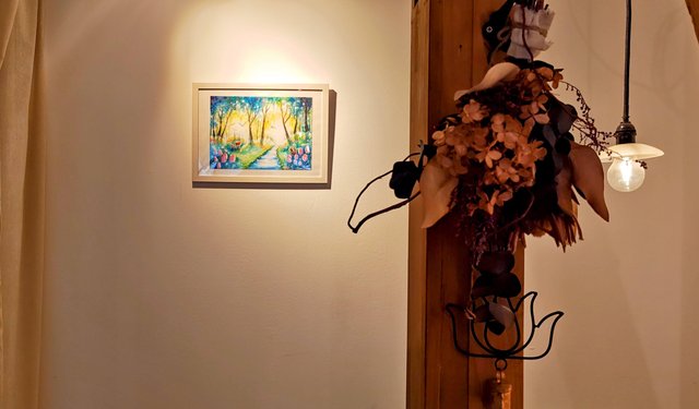 壁に吊るされているドライフラワーや絵画も素敵です。