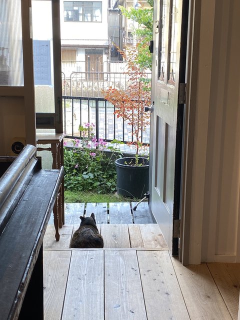猫好きのオーナーさんのお店には、地域猫も顔を出します。