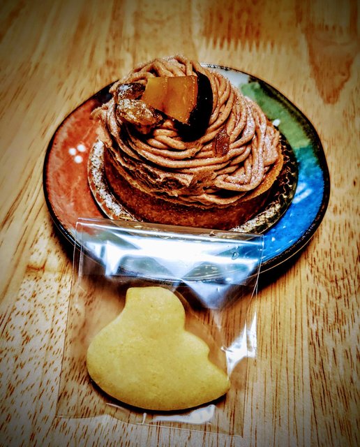 実はこの日は急用で時間が無く、仕方なくモンブランをテイクアウトしたのですが、おまけに可愛いクッキーが入っていてちょっと幸せな気分でした。
