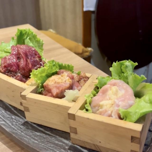 なんと牛、豚、鶏の3種類のサガリが食べ比べできるんですよ〜