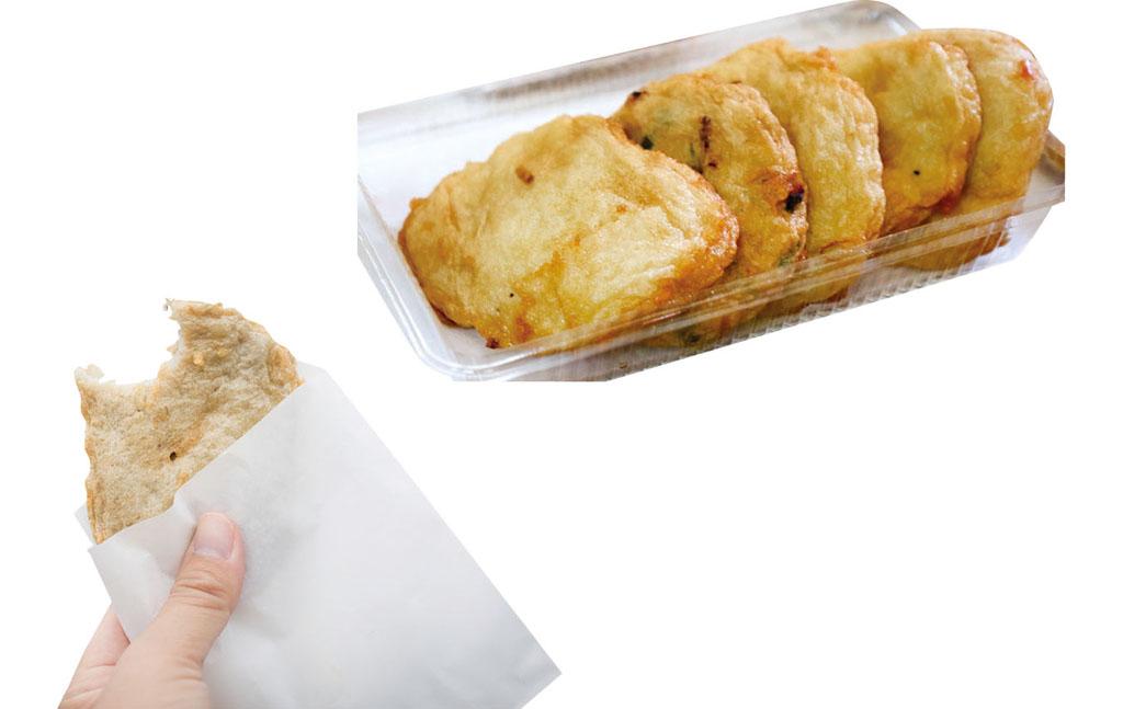 (右)瀬戸内天(5枚) 750円、(左)じゃこ天 170円