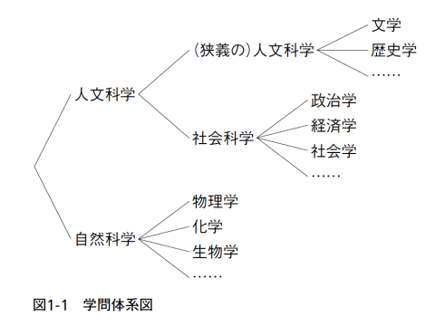 それでもいわゆる「自然科学」の場合、誰でも知っていて、それを共通の基礎としてふまえている「基礎理論」「一般理論」とでもいうべきものが、ある程度はっきりとあることが多いのです。「社会科学」の中でも、とくに経済学の場合には、そういう色彩が濃厚です(図1-1)。しかし社会学においては、「誰もが共通の土台としてふまえる基礎理論」がはっきりとは見当たらない。社会学者はそれぞれ、自分の問題関心に応じて、社会を理解するための理論を学び、あるいは自分で作ったりしているのですが、そういう理論が社会学の場合にはたくさんありすぎる。