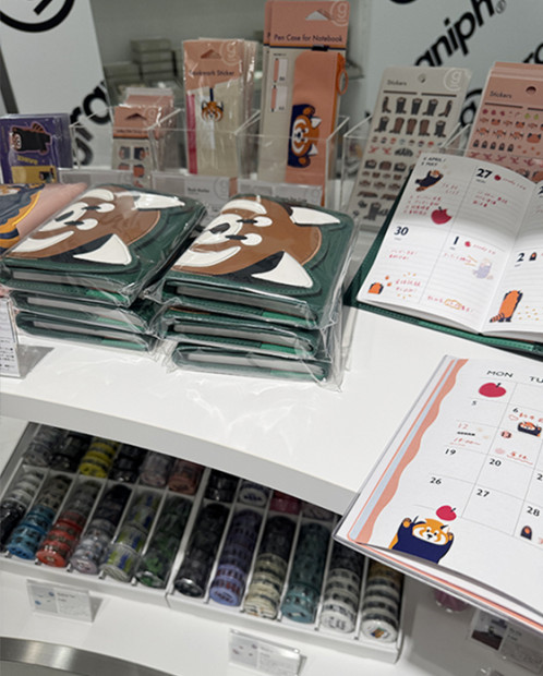 店内に並ぶアイテムは、Tシャツはもちろん、これからの季節にぴったりな、フーディやアウターなどの冬物や、帽子やバッグ、文房具まで…!ラインナップが豊富で、見応えたっぷりでした。
