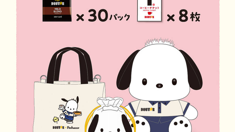 ドトールコーヒーとサンリオの人気キャラクター「ポチャッコ」がコラボした「福袋2026」が、2025年12月26日から全国のドトールコーヒーショップで発売決定!