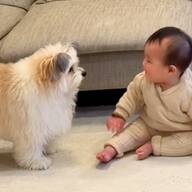最初こそつかまり立ちをして興味津々な様子を見せるみにらくんでしたが、しばらくすると落ち着いて、なんだか眠そうな表情に。そこで飼い主さんは、ベランダと繋がっている窓を少し開けてみることにしたそうです。