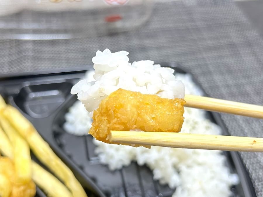 ポテト3種類のうちのどれを食べても「米と芋」以上の感想はないのですが、強いて言うならハッシュドポテトが1番合う気がしました。全体的に粗くて硬い食感のため、白ごはんの柔らかい食感と差別化がされているからです。