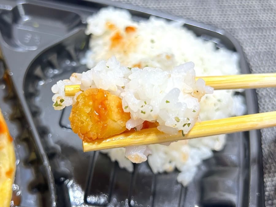 白ごはんの方も、表面にパセリがまぶされている以外は特に変わったところのない普通の白ごはん。少し柔らかめでもちっとしており、甘みが立っている気がしました。