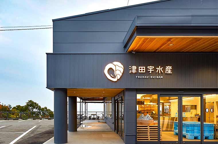 播磨灘を臨む国道250号(はりまシーサイドロード)沿いに車を走らせると海側に見えてくる「津田宇(つだう)水産」。