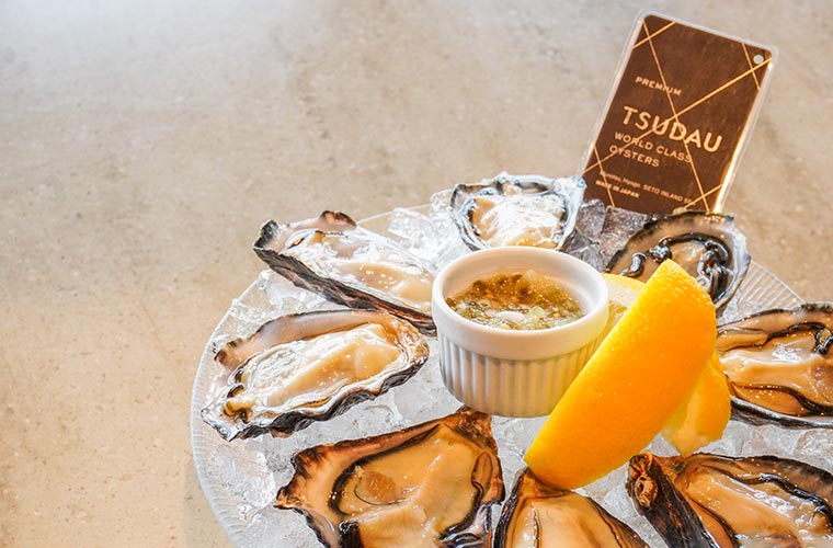 一般的な牡蠣の旬は12月〜6月ごろですが、同店では、海外の養殖方法を取り入れることで一年中生牡蠣の提供を可能に。恵まれた環境で育った津田宇水産の牡蠣は、身が大きくてぷりっぷり!熱を加えても縮みにくいのが特徴です。