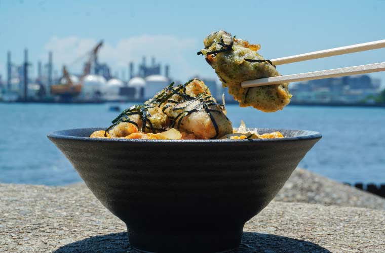 『牡蠣天玉丼』は一年を通して注文可能なのがうれしいポイント!甘辛い味付けの卵とじの上に、青のり入りの牡蠣天をのせた豪快なビジュアルと、そのおいしさにもくぎ付けになります。さらに牡蠣の季節には、期間限定で『牡蠣フライ定食』(1,200円)も登場します。